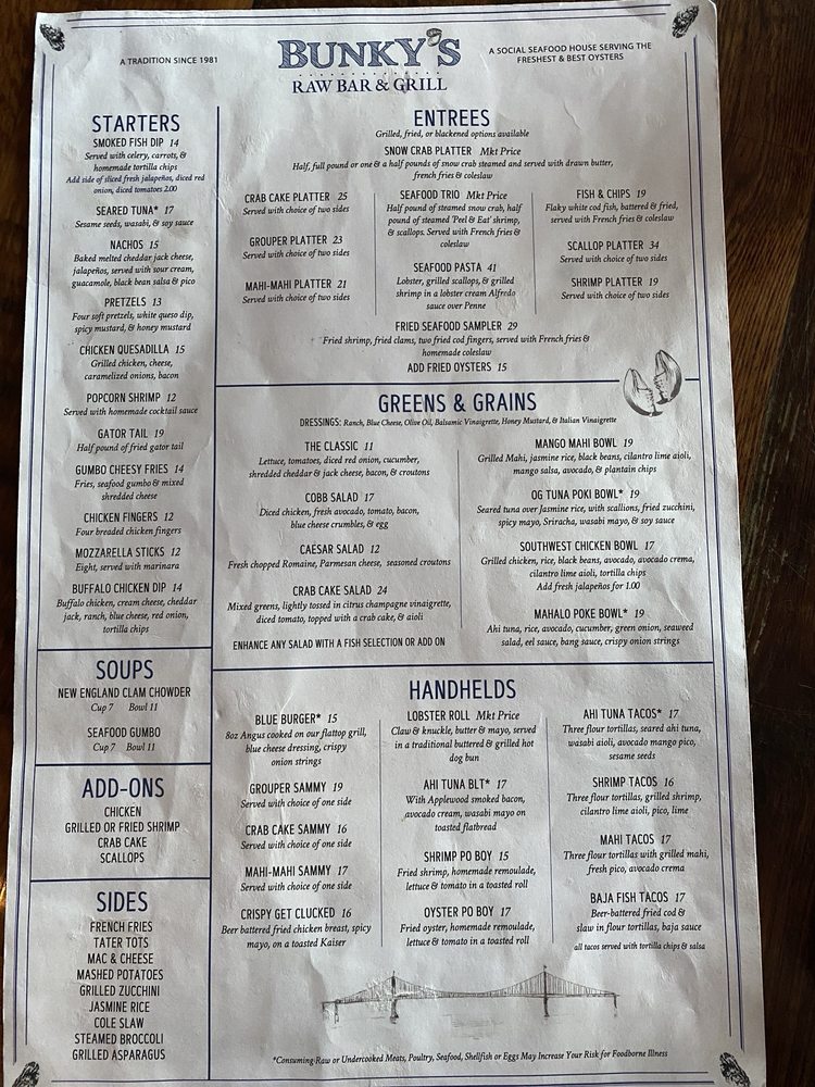 Welcome to Bunky's Raw Bar & Grill, a vibrant sports bar located in Indialantic, Florida. This casual eatery excels in offering a diverse menu that caters to seafood lovers and casual diners alike. Not to miss are the freshly shucked oysters, served by the half or baker's dozen, perfect for indulging at any hour.